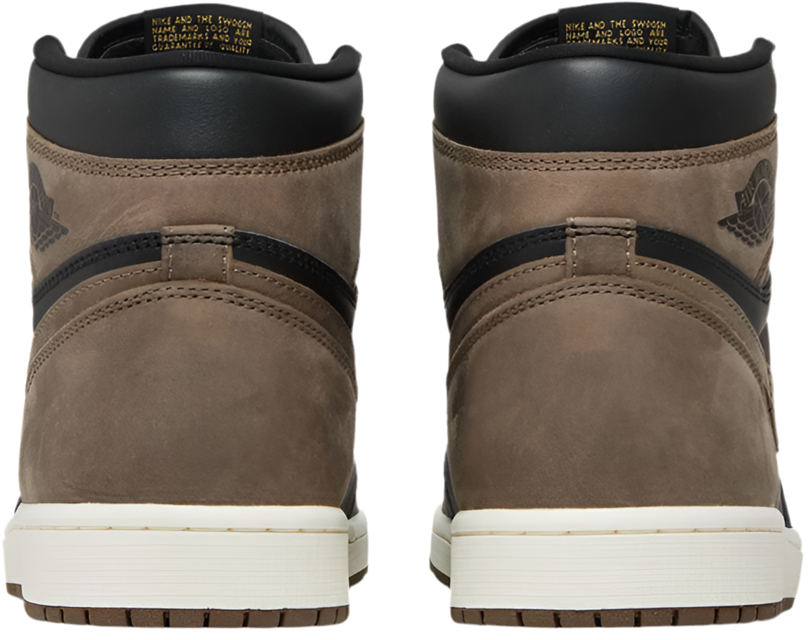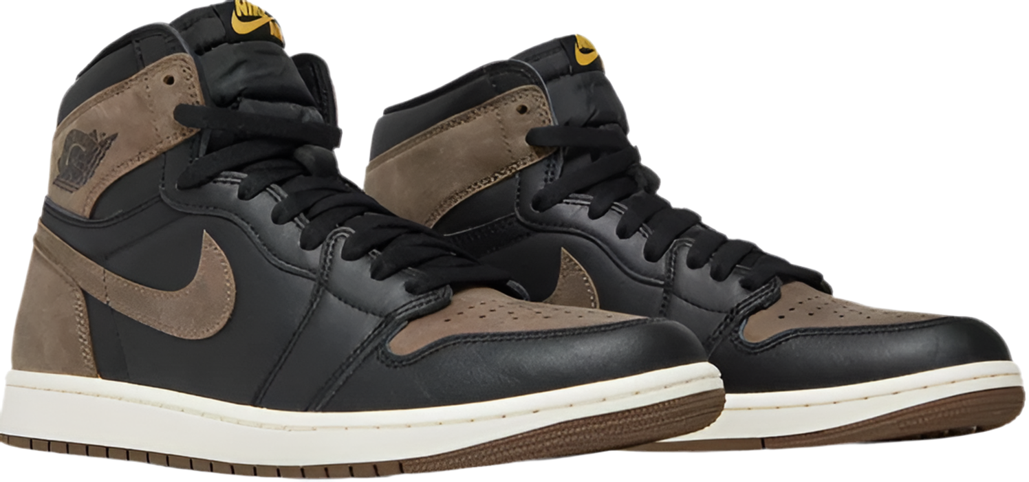 The Air Jordan 1 Retro High OG ‘Palomino’ merges a luxe build with OG-inspired two-tone color blocking. The sneaker icon carries a black leather upper, accented with aged brown nubuck on the toe box, Swoosh, heel overlay and collar flap. The latter is marked with a black Wings logo on the lateral side, while the woven tongue tag displays a Nike logo with metallic gold lettering. A contrasting off-white finish is applied to the midsole, built with stitched sidewall construction and encapsulated Air-sole cushioning. Underfoot, a brown rubber outsole features a traction pattern designed to grip the hardwood.