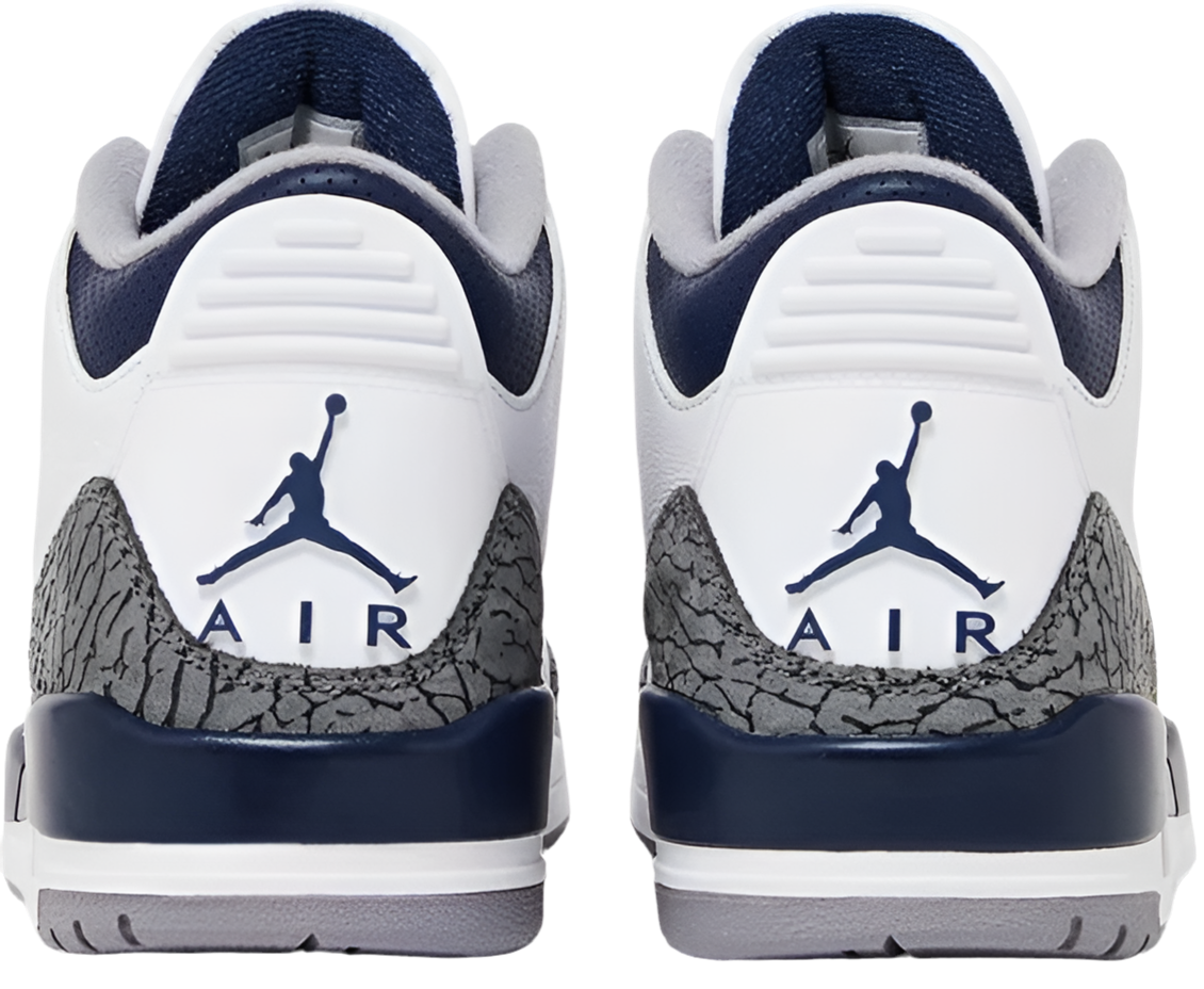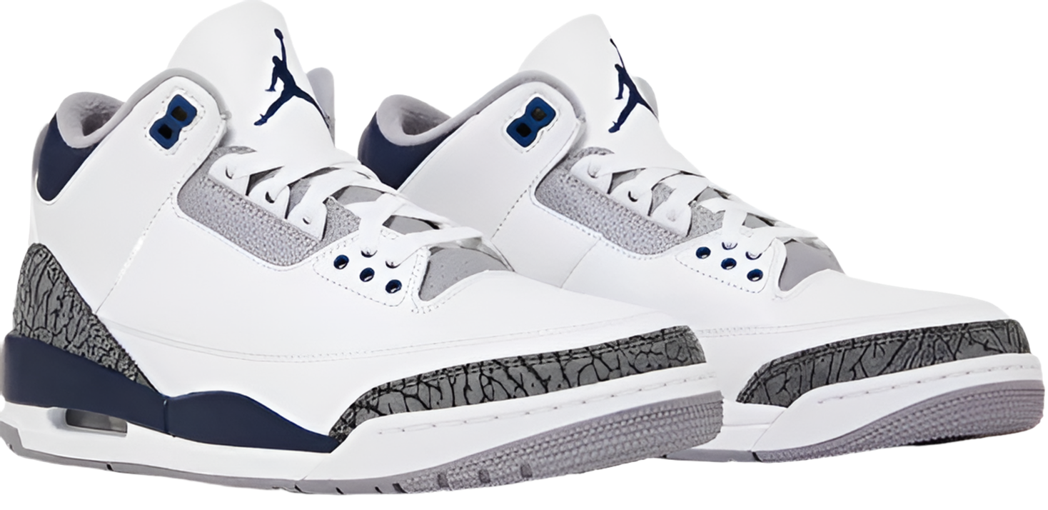 The Air Jordan 3 Retro ‘Midnight Navy’ features OG-inspired color blocking that recalls the iconic ‘White Cement’ colorway from 1988. The classic silhouette dons a white tumbled leather upper, bolstered with the shoe’s iconic elephant-print overlays at the forefoot and heel. A Jumpman logo in Midnight Navy embellishes the tongue and molded back tab. The mid-top rides on an Air-assisted polyurethane midsole, finished in white with a contrasting splash of navy at the heel.