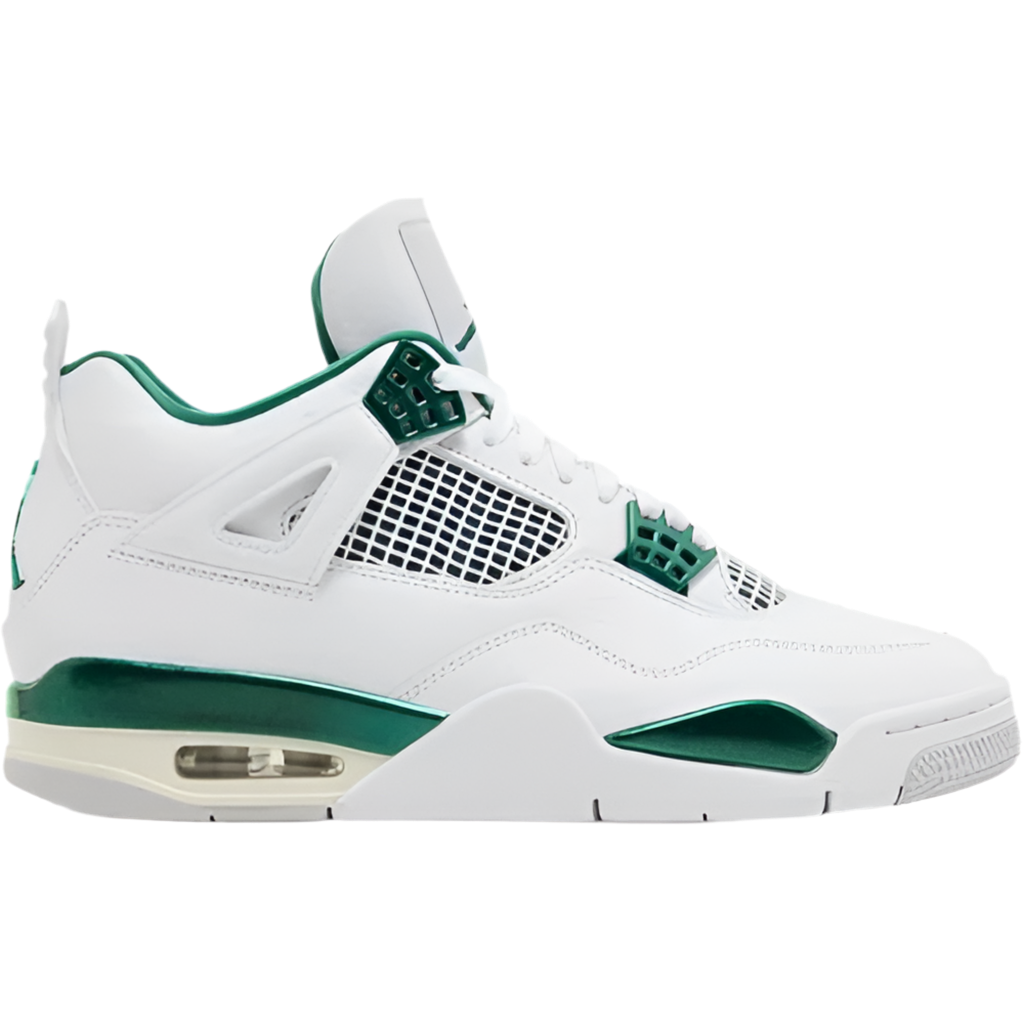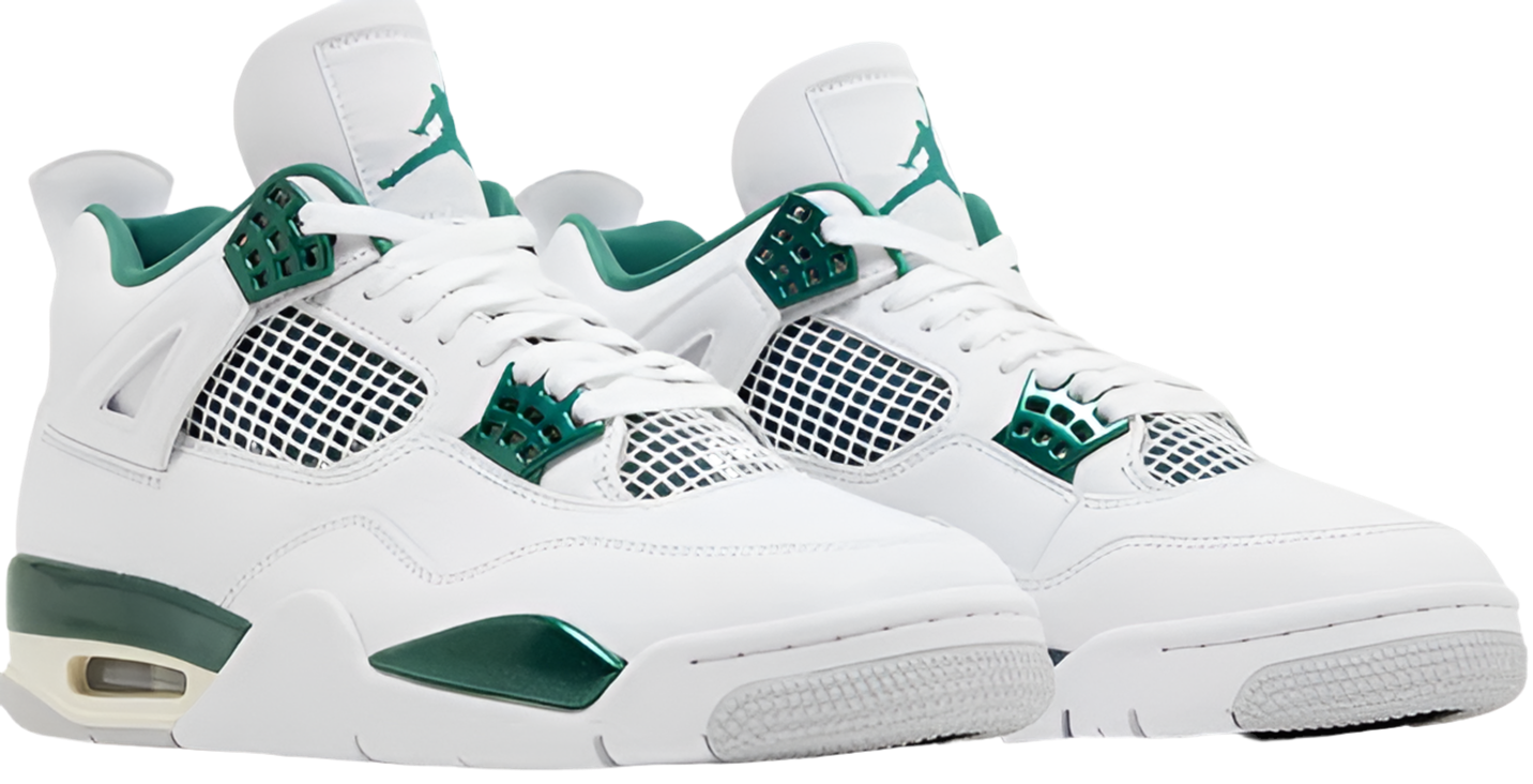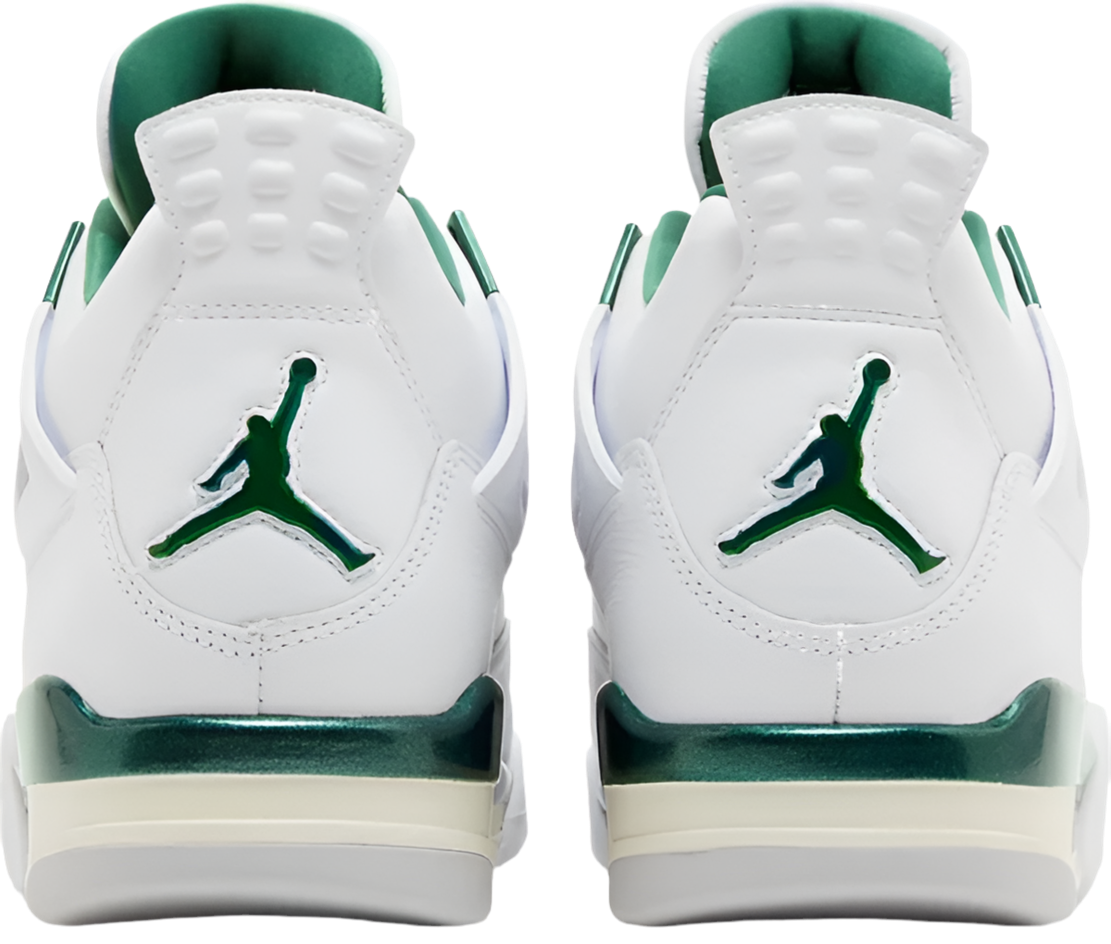 The Air Jordan 4 Retro ‘Oxidized Green’ arrives in a crisp white leather upper with tonal quarter panel netting and grey molded eyelets. Contrasting green accents make their way to the support wings and back tab, marked with embossed Jumpman branding. A second Jumpman logo decorates the woven tongue tag. An additional hit of green coloring distinguishes the lightweight polyurethane midsole, featuring an exposed Air-sole unit in the heel.