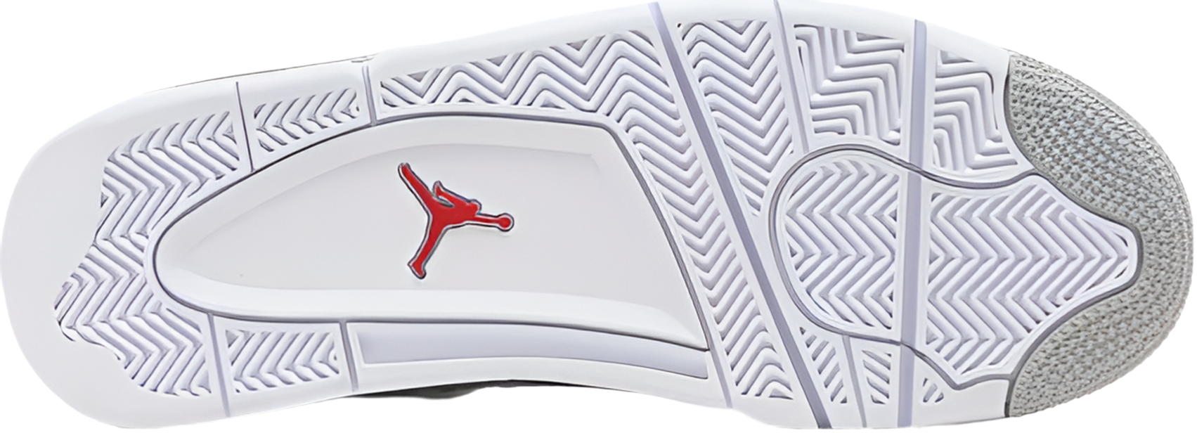 The Air Jordan 4 Retro ‘White Oreo’ features a design theme that recalls the original ‘Oreo’ AJ4 from 1999. The black tumbled leather upper of the older shoe is replaced by a clean white finish, though the speckled molded eyelets in Tech Grey remain the same. The neutral hue is repeated on the Jumpman heel logo and polyurethane midsole, featuring encapsulated Air cushioning in the forefoot and a visible unit under the heel. A second Jumpman adorns the tongue in a contrasting pop of Fire Red.