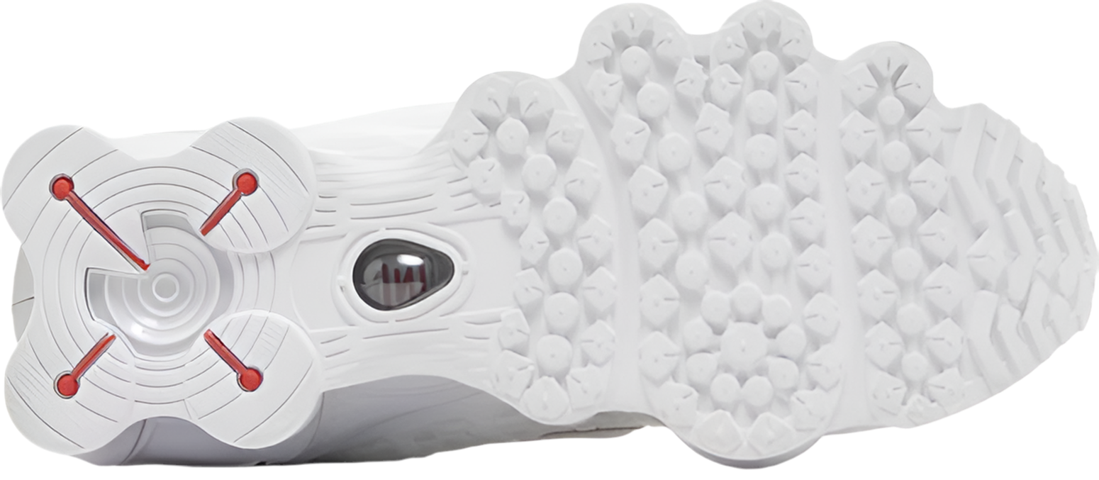 The 2023 edition of the Nike Women’s Shox TL ‘White Silver’ features a textured white mesh upper fortified with tonal TPU overlays and accented with a molded Swoosh outlined in metallic silver embroidery. Nike Shox branding appears at the tongue and back heel in Max Orange, delivering unexpected pops of color. The silhouette’s unique cushioning system takes the form of a series of polyurethane pillars, supported underfoot by a durable rubber outsole.